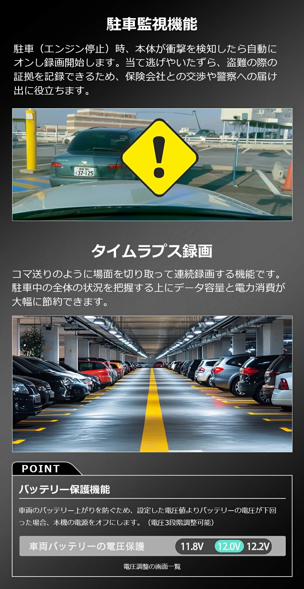 ●3つの録画モード(常時録画・衝撃録画・駐車監視録画)