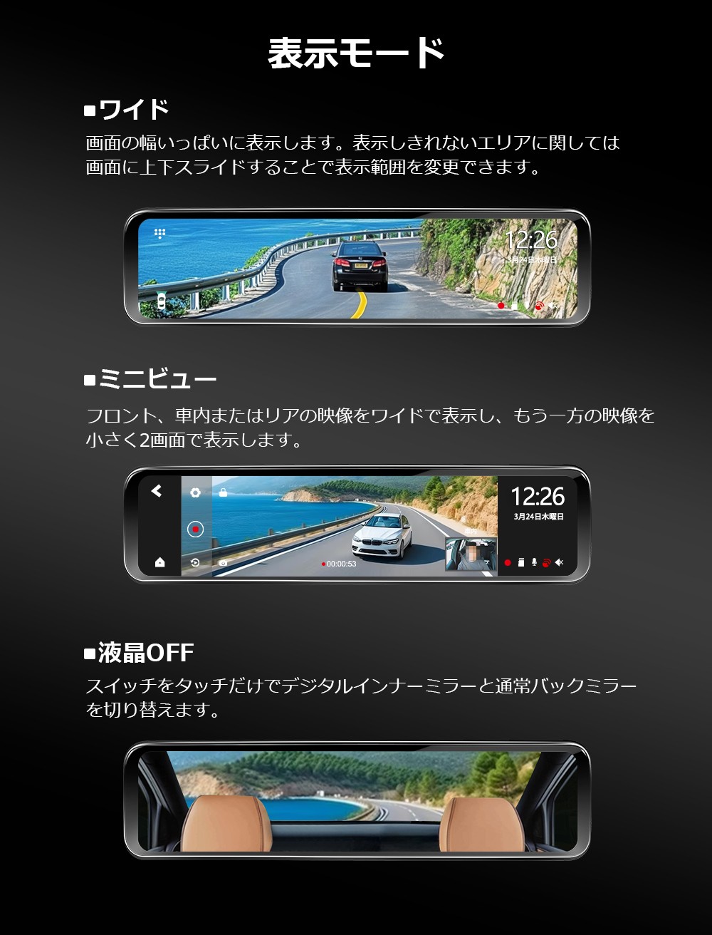 ドライブレコーダー ドラレコ ミラー型ドラレコ デジタルインナーミラー ミラー型ドライブレコーダー デジタルミラー ルームミラー型ドライブレコーダー デジタルルームミラー 前後 後付け 360度 爆買