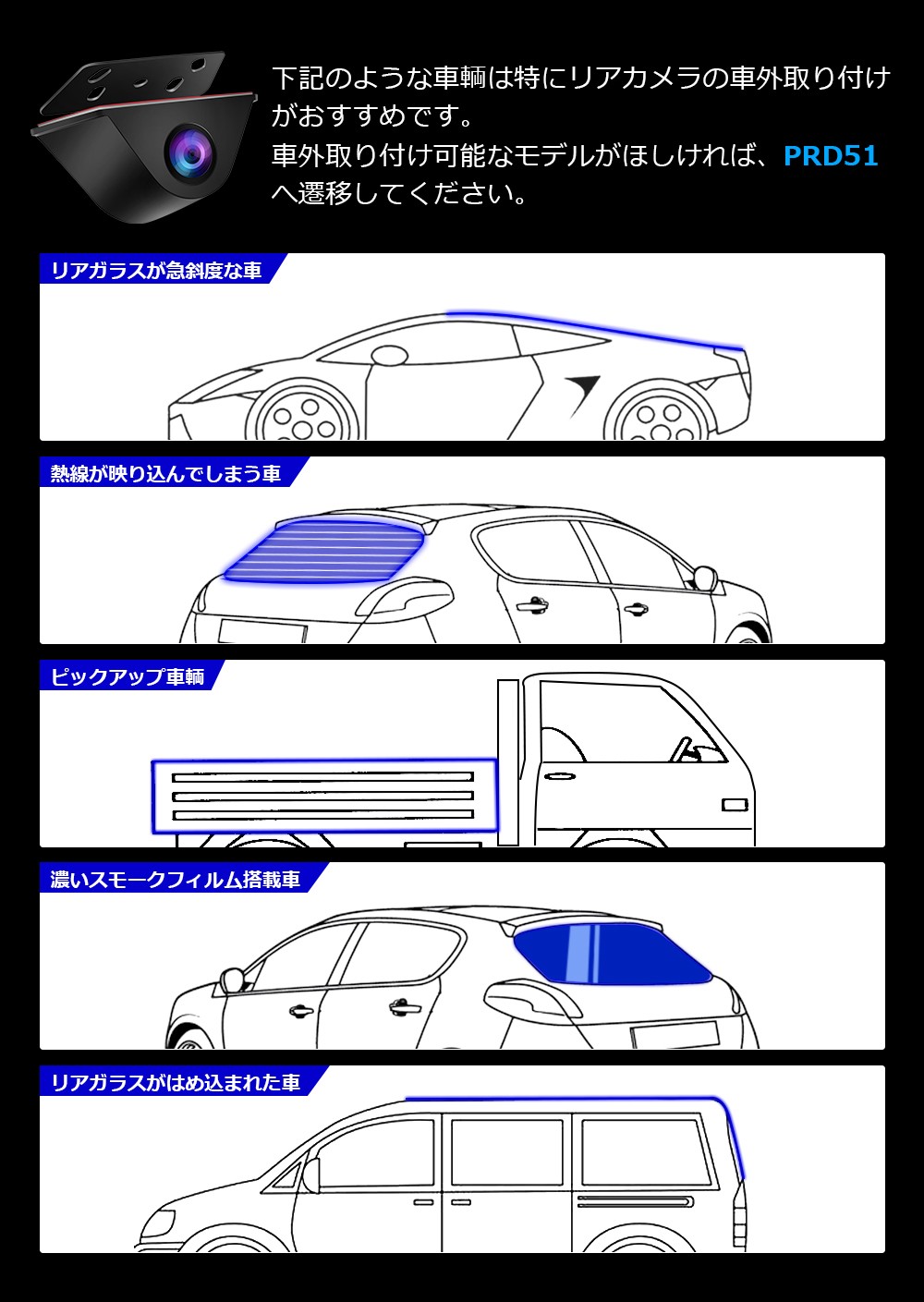 ●車内専用スモークフィルム対応リアカメラ