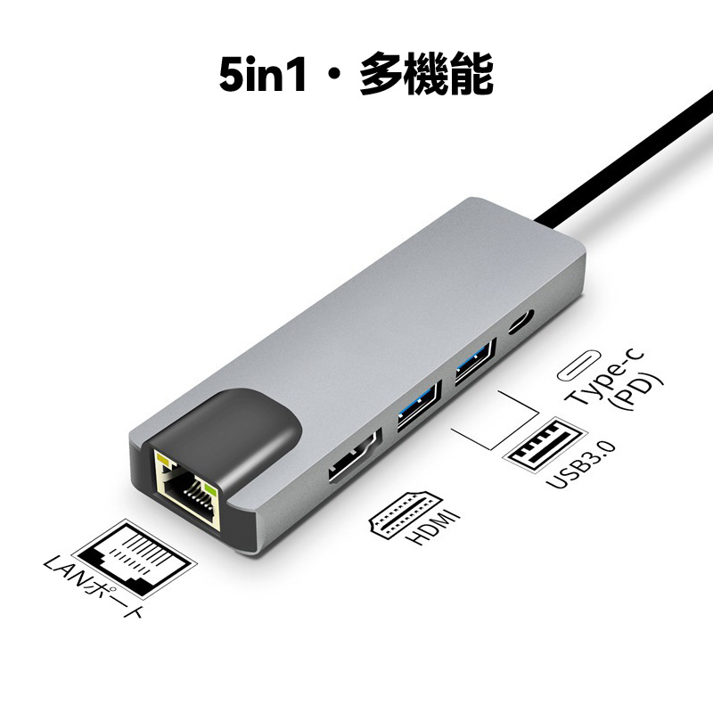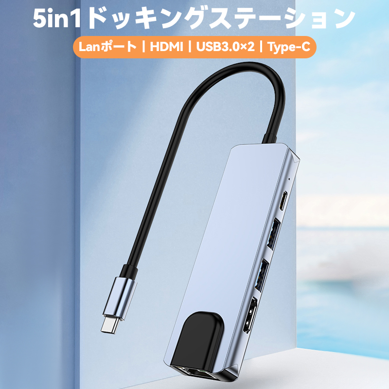 5in1 ドッキングステーション ハブ HDMI Lan ポート USB 3.0 Type-C ラン ギガ タイプ c 充電 変換 アダプター 有線 増設 拡張 4K Macbook Windows