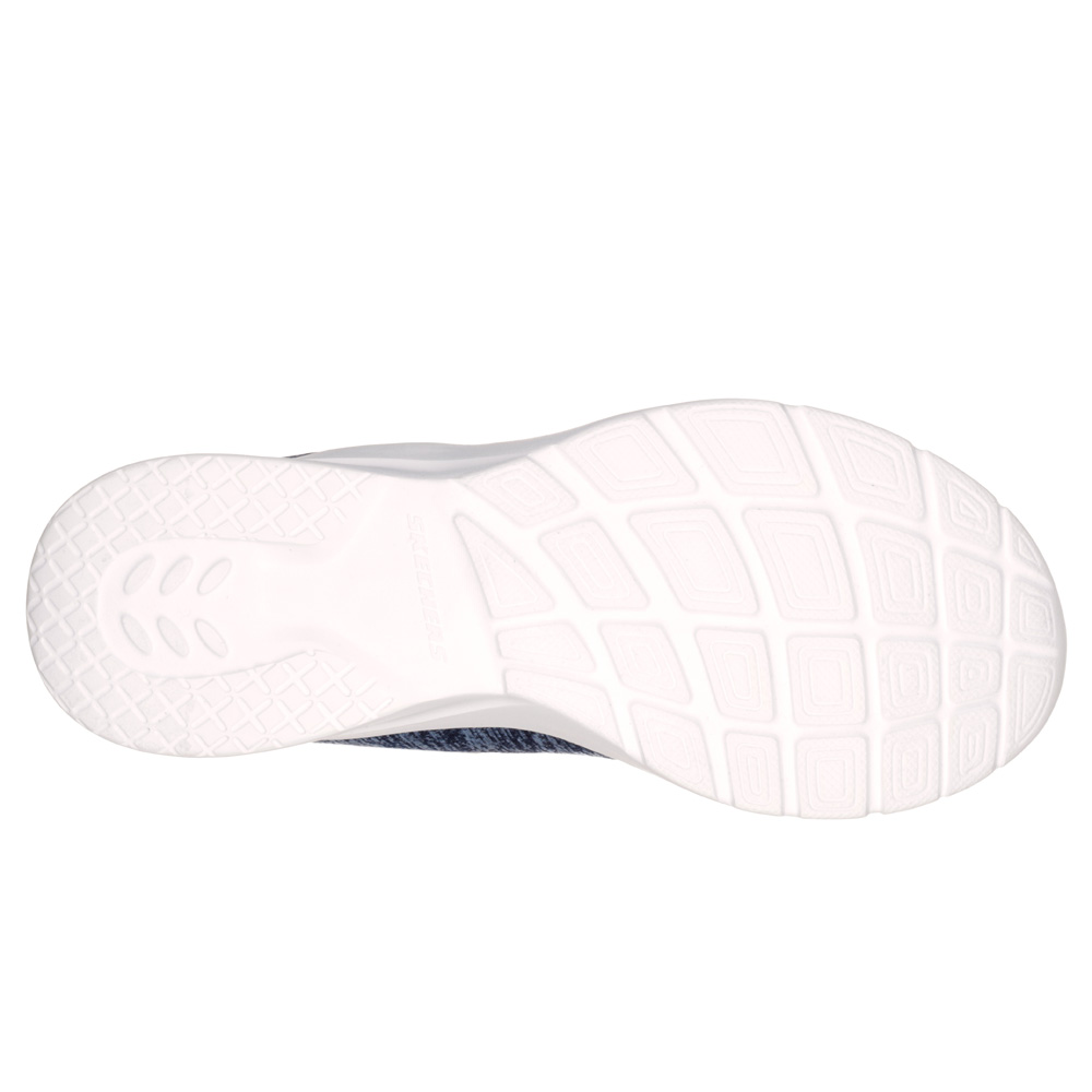 ソフトなヘザーメッシュのアッパー、固定ストレッチレースのフロント、衝撃吸収ミッドソール、Skechers Memory Foamを採用したカジュアルなスポーティシューズ。