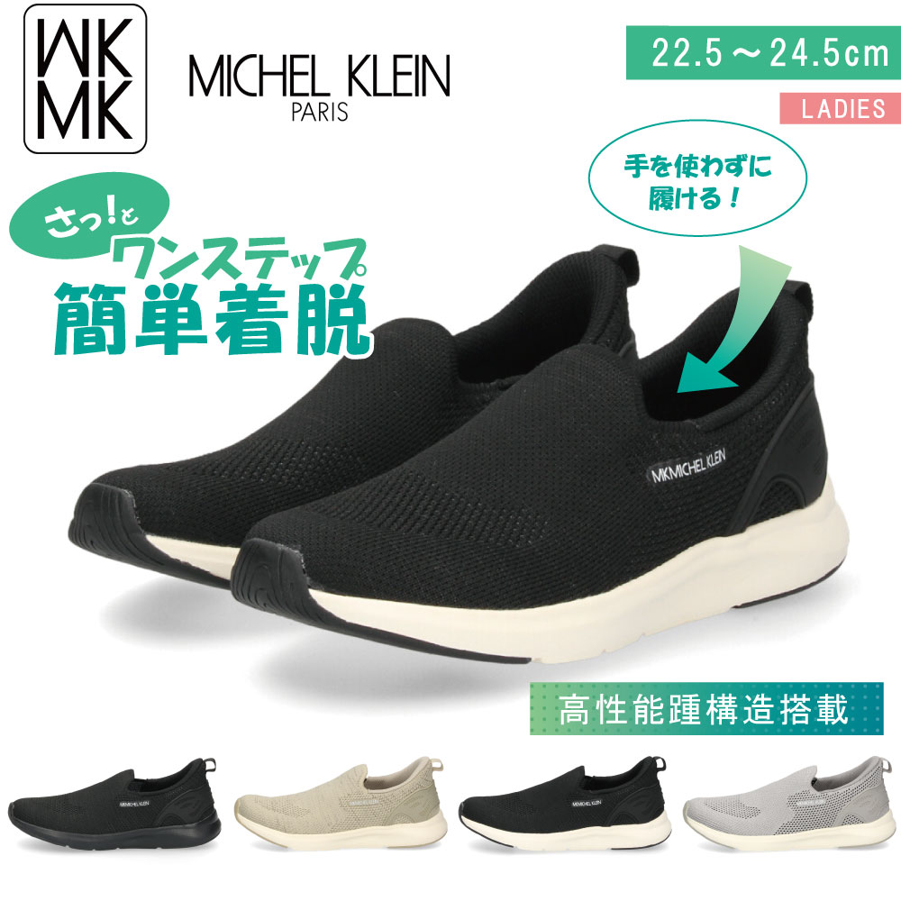 スニーカー レディース スリッポン 靴 履きやすい 軽量 通気性 メッシュ ハンズフリー クッション性 シンプル 黒 ミッシェルクラン 2800 MK MICHEL KLEIN