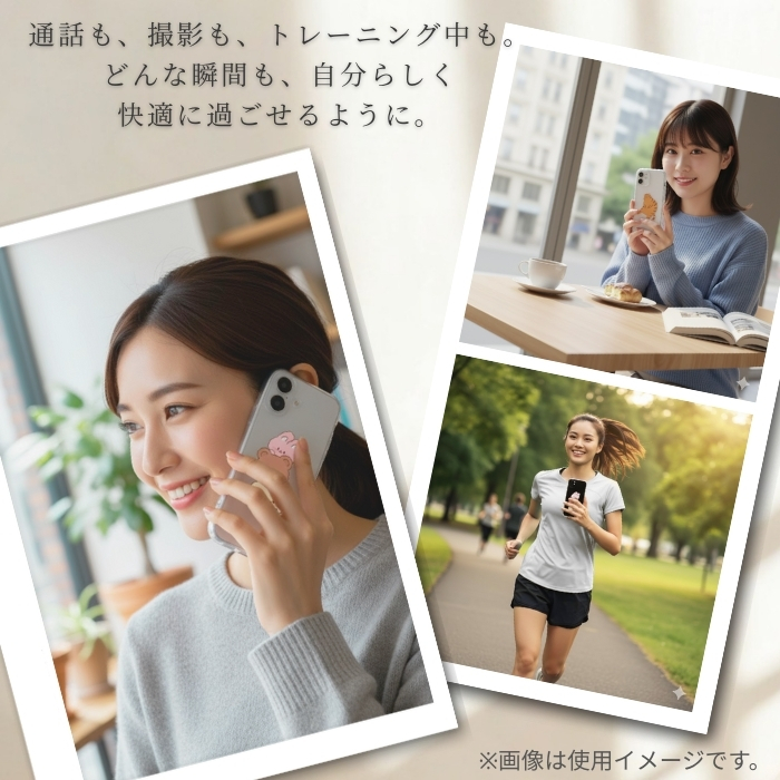お手持ちのストラップを取り付けられるため、落下防止にも安心。