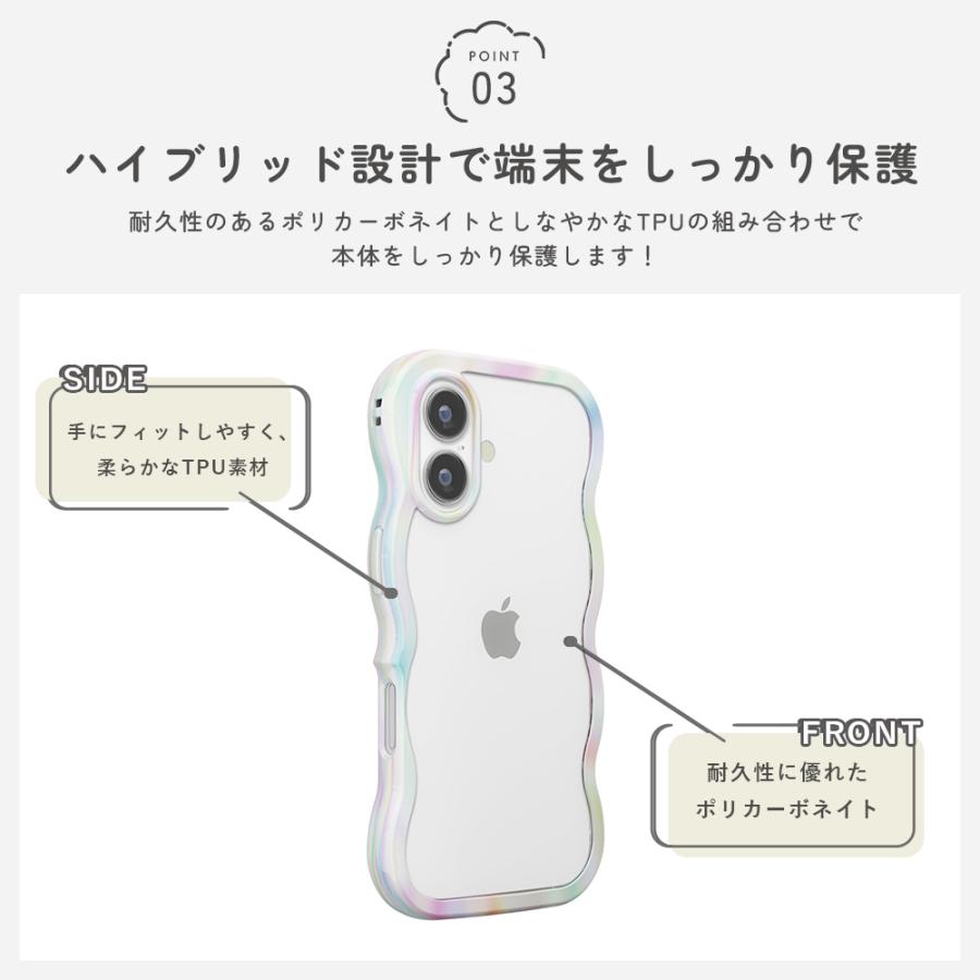 可愛らしさと機能性を兼ね備えたウェーブデザインの iPhoneケースで、自分らしいスタイルを楽しみましょう。
