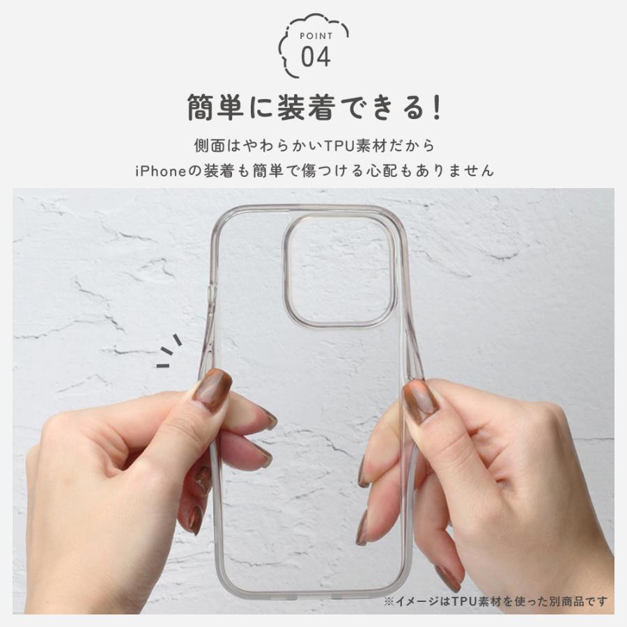 ケース背面は透明タイプで、iPhone本体の美しさを最大限に活かせます。