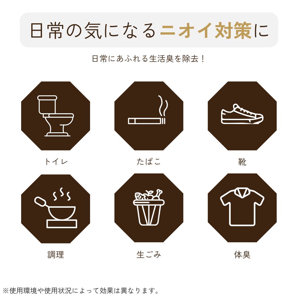 ペットの臭い、菌、ウイルス、花粉、タバコの臭い、ほこり、排ガス、カビ