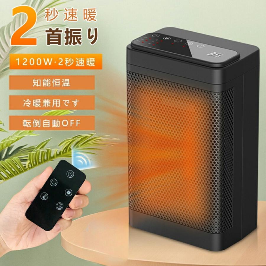 セラミックヒーター 小型 ヒーター 電気ストーブ 卓上 ファンヒーター ストーブ 2秒速暖 左右首振り 大風量 1台2役 リモコン付き 新生活