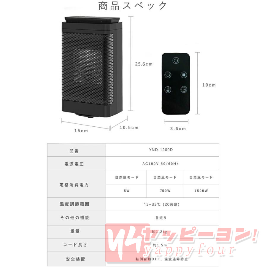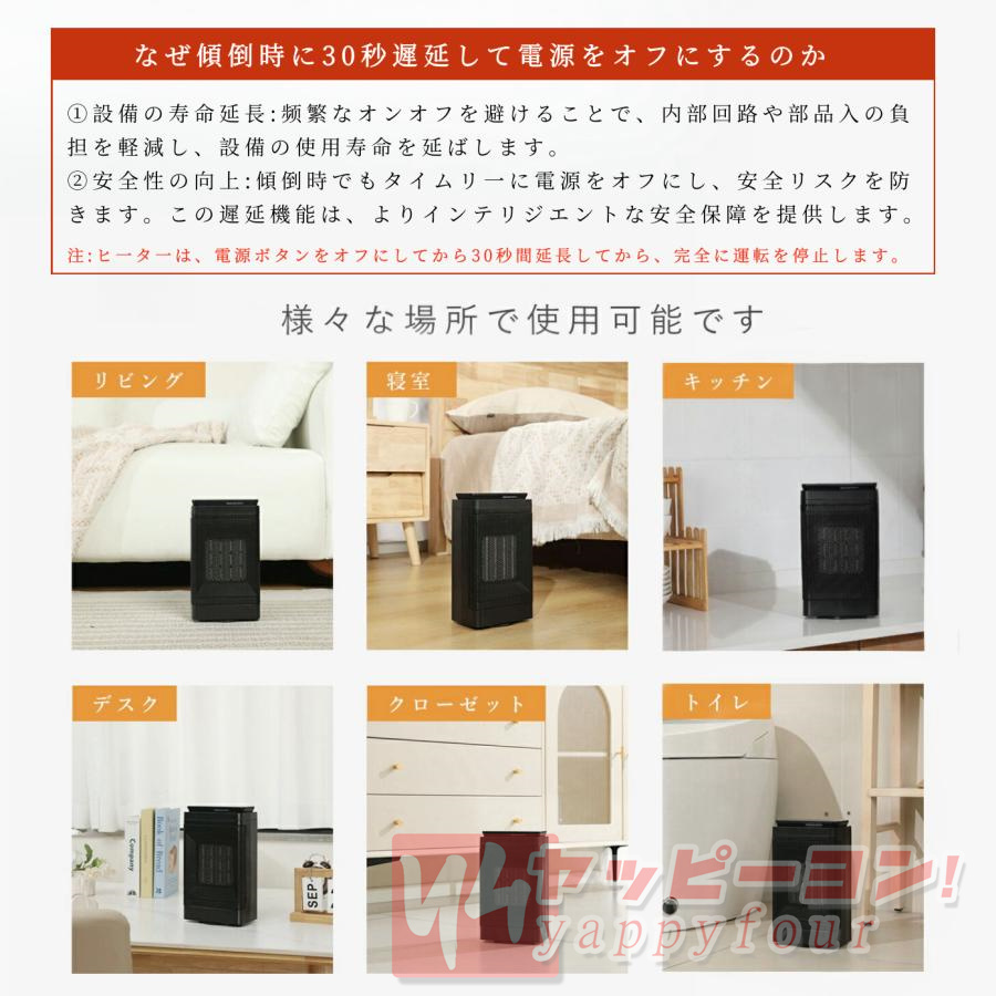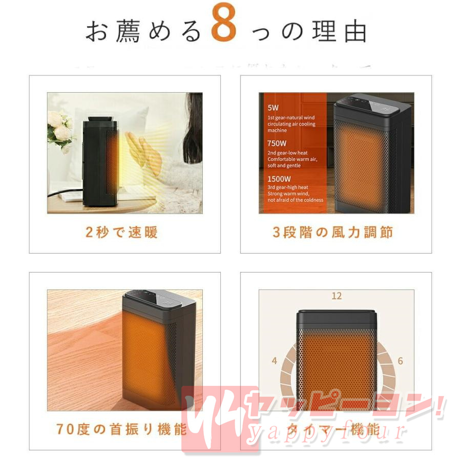 仕様 ・高速暖房: セラミック要素により、素早く暖かい空気を放出し、部屋全体を短時間で暖めます。