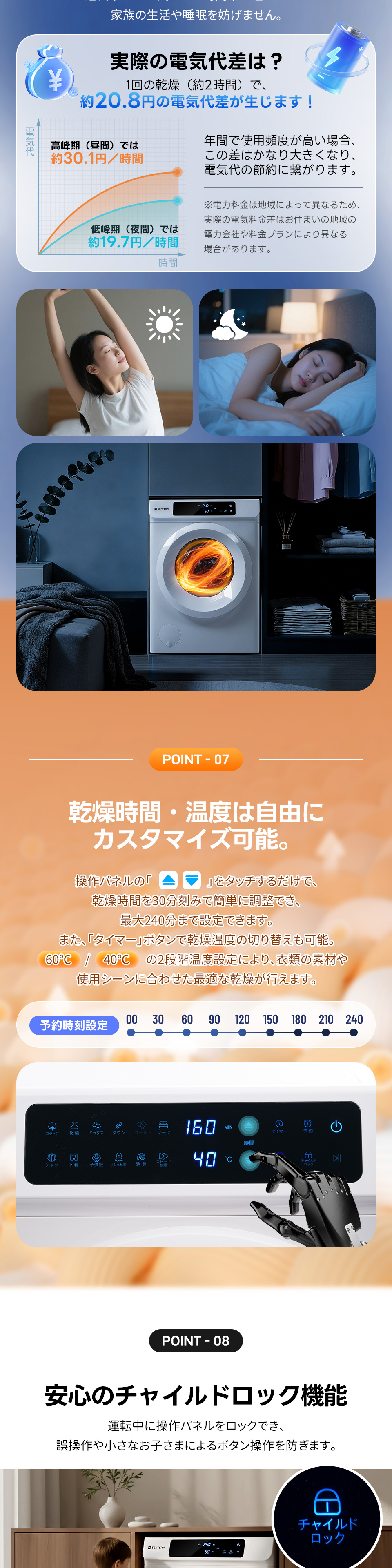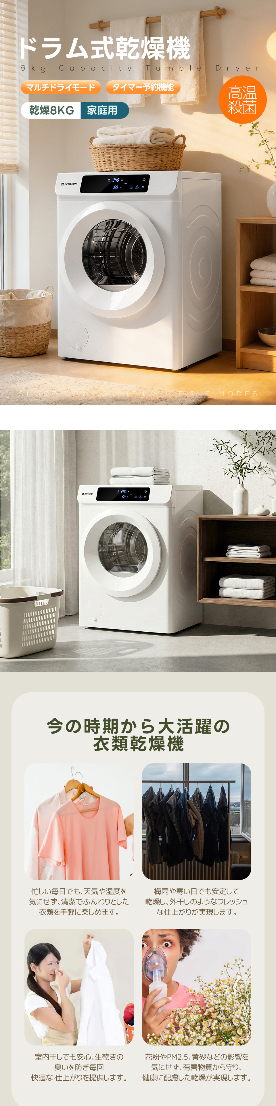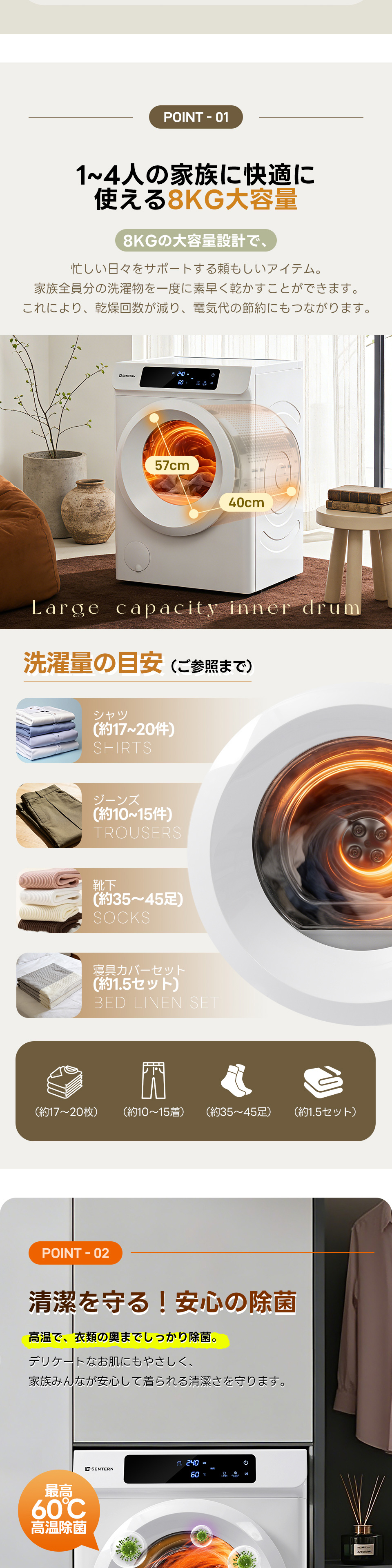 新作価格中!【タッチパネル】8kg 衣類乾燥機 大容量 家庭用 操作簡単 タイマー 節電 除湿 除菌 シワ取り 衣類 チャイルードロック カビ対策 洋服 おしゃれ