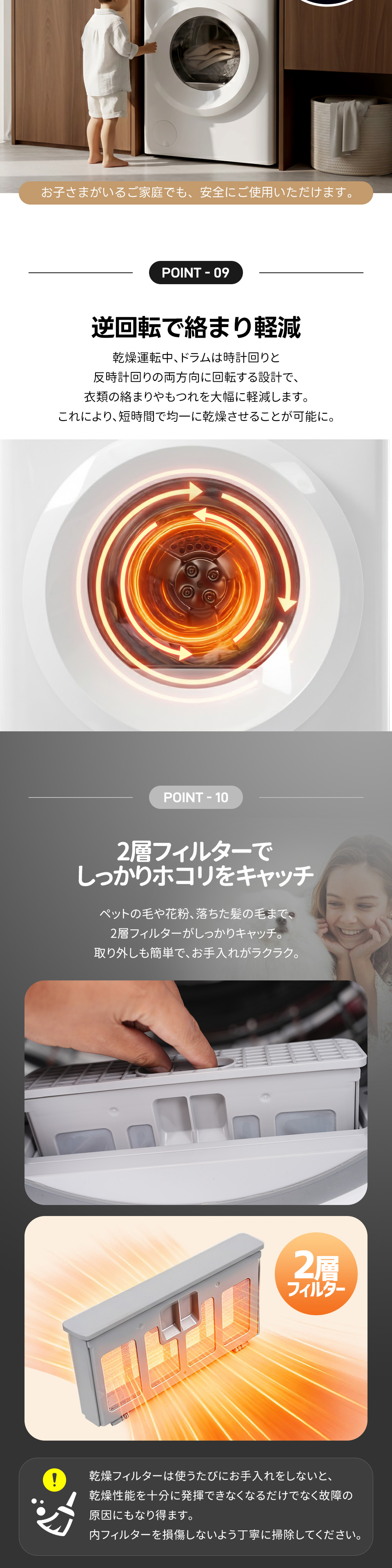 ※こちらの商品は家庭用乾燥機です。業務用ではありませんので宿泊施設やスポーツジム等、不特定多数の方が使用される場所での利用の場合は1年保証の対象外となります。