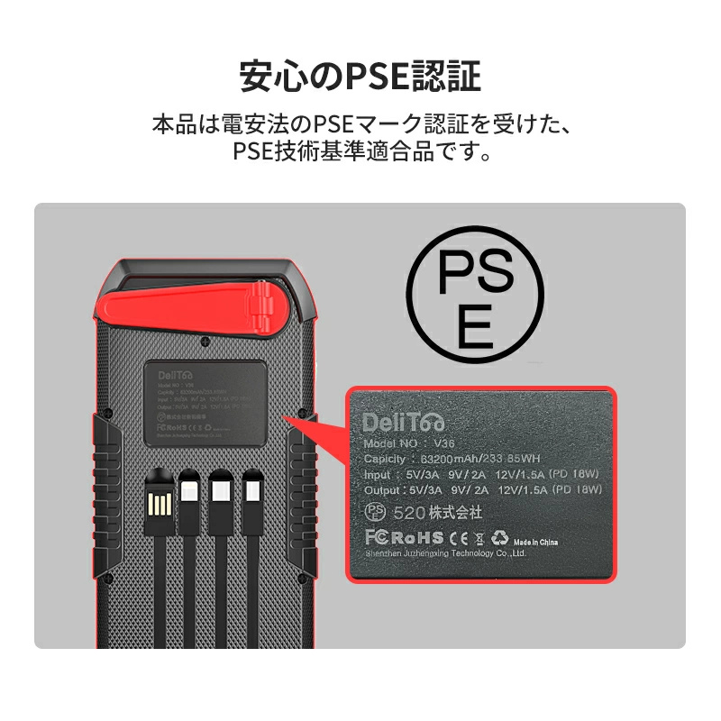 63200mAhの超大容量により、1回フル充電すればスマホとタブレットなどに数回に充電でき、充電切れの心配がありません。